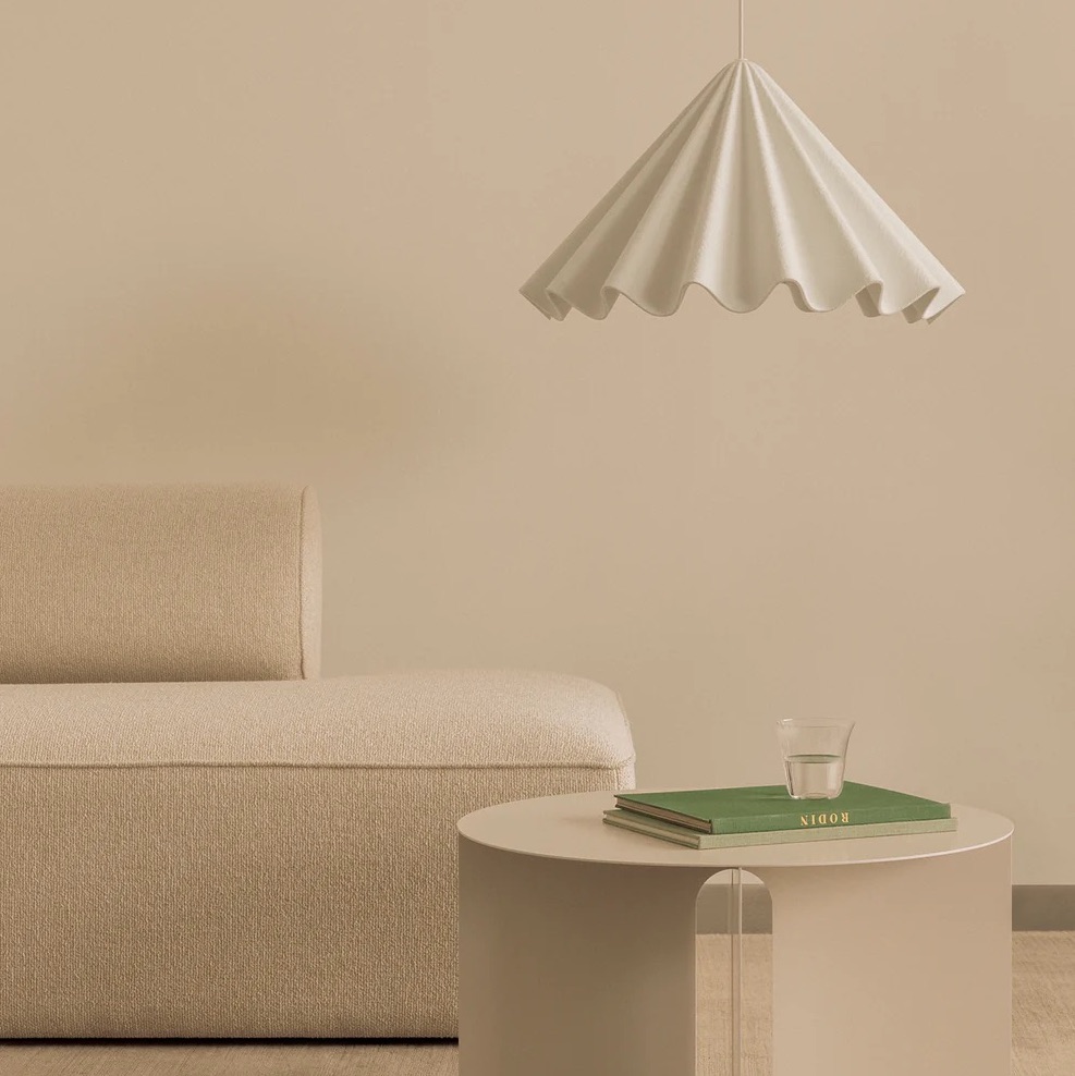 Design is an art of storytelling according to the Copenhagen-based duo Iskos-Berlin, and their Dancing Pendant for Audo Copenhagen puts that principle into practice. Exquisite, yet with a playful twist, the expressive statement lamp takes its design cues from a dancer’s pleated skirt caught flaring up mid-twirl — an idea that grows and finds its final form, precise and orderly yet soft and fluid. The sustainable lamp is crafted in tactile polyester felt, a recyclable material made from used plastic bottles.